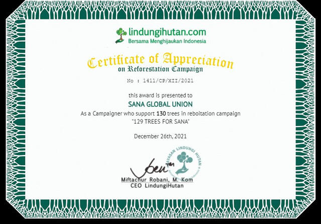 Donation project via LindugiHutan to plant 129 Mangrove trees in Indonesia in Sana's name.